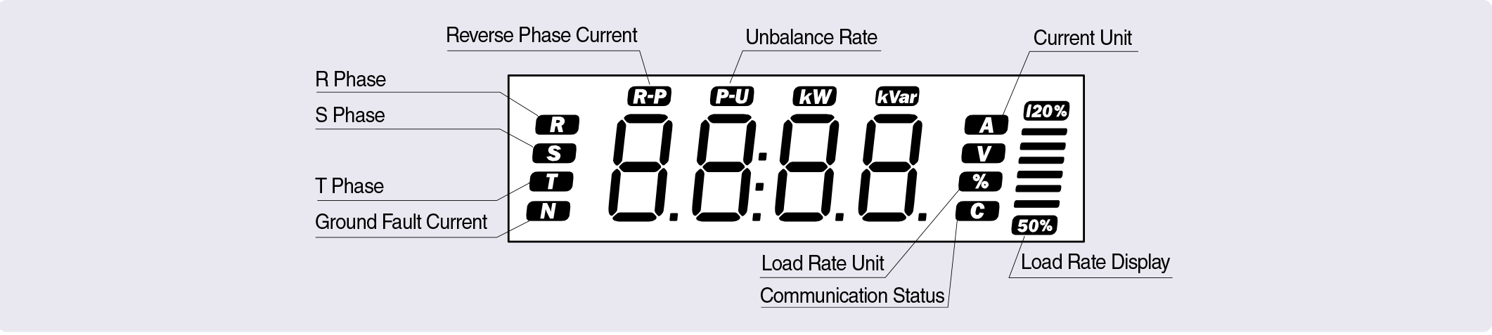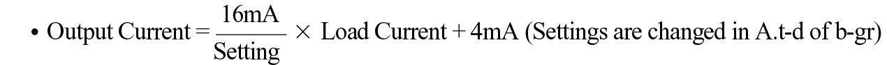 3) When the system is the 0.5A~10A setting mode, measurement starts from 0.3A. Whenthe system is the 5A~100A setting mode, measurement starts from 3A. Thus, when the current is under 0.3A (3A), 0A is measured and output is 4mA. (To measure the load current correctly, an appropriate CT should be used).